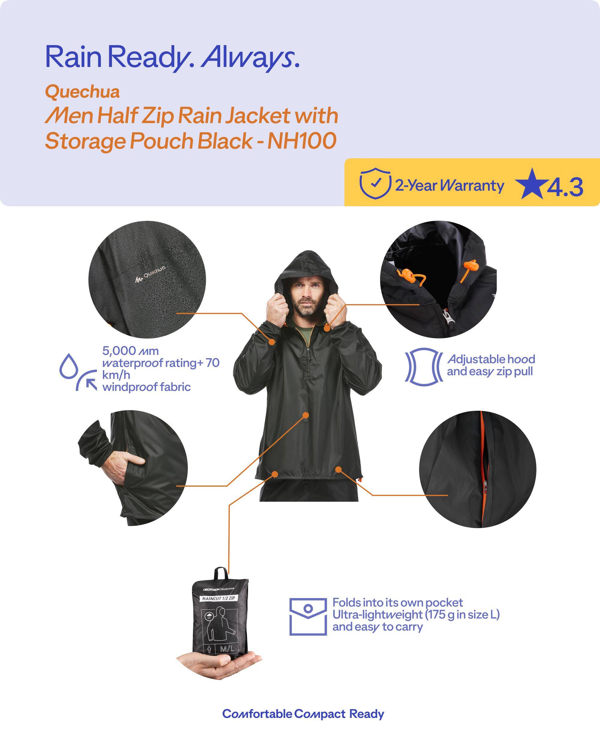 Men Half Zip Rain Jacket with Storage Pouch Black - NH100