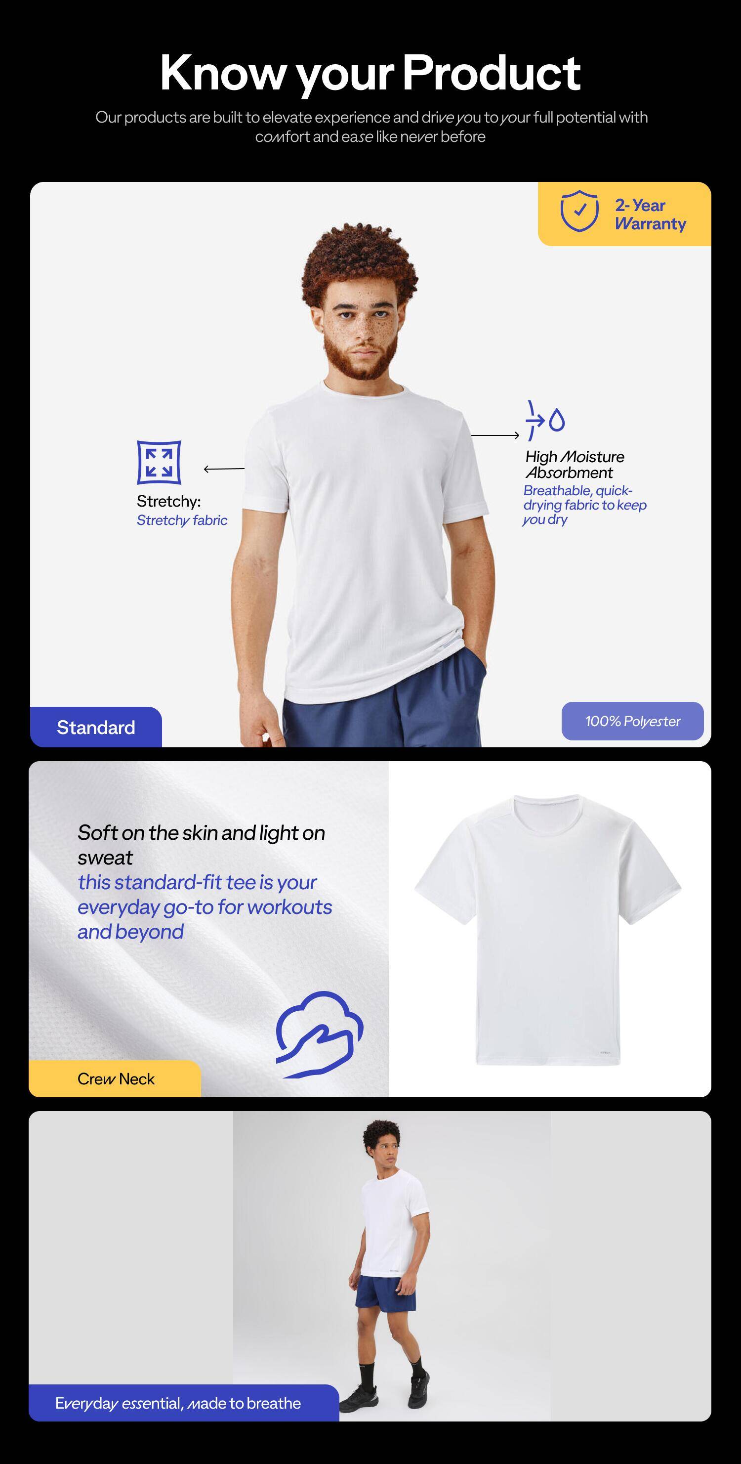 Men Running T-Shirt Breathable, Quick Dry, Kiprun 100 - White