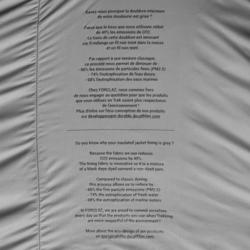 The fabric we use reduces Co2 emission by 40% and We use dope dyed yarn which allows us to reduce 66% the fine particle emission (PM 2.5), 70% eutrophication of fresh water and 68% the eutrophication of marine waters. For warmth we make a padding of fine brushed polyester strands which creates air pockets in the jacket and these air pocket trap the air and heat it by the body warmth and keep the warm air trapped inside the jacket hence keeps you warm and comfortable which is tested in real life conditions upto -5 degrees when proper layering is done.