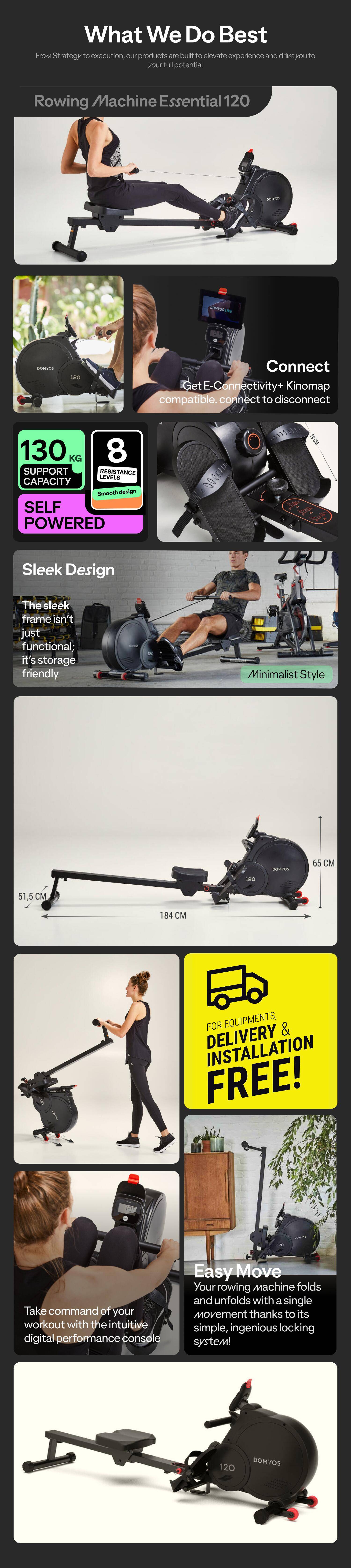Rowing Machine Woodrower, Self Powered, Compact, Smart, 9 kg Flywheel, Quiet