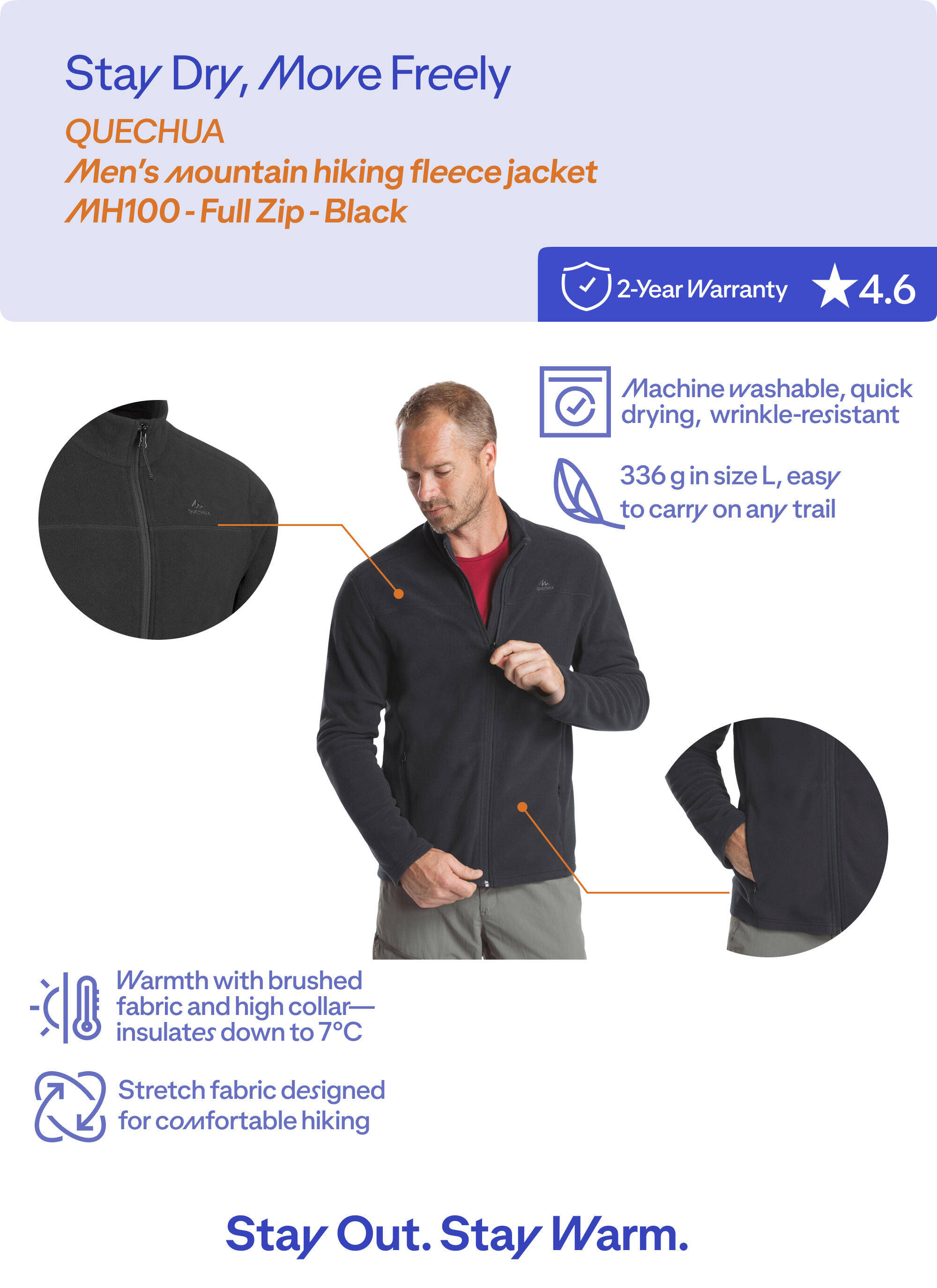 Men's Mountain Hiking Fleece MH100 Full Zip - Black