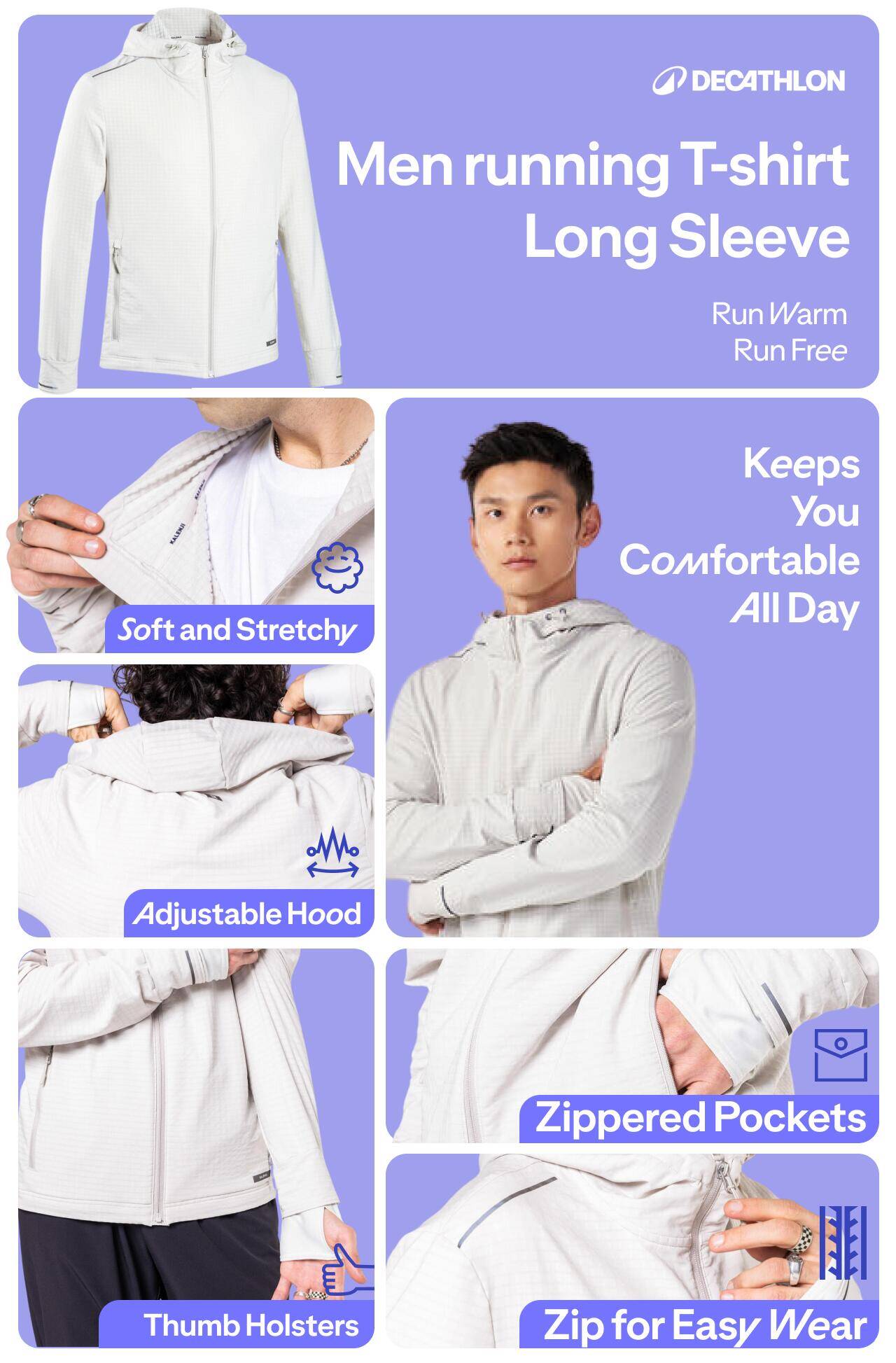 Men's KIPRUN RUN 500 Warm Running Jacket - Pebble Beige