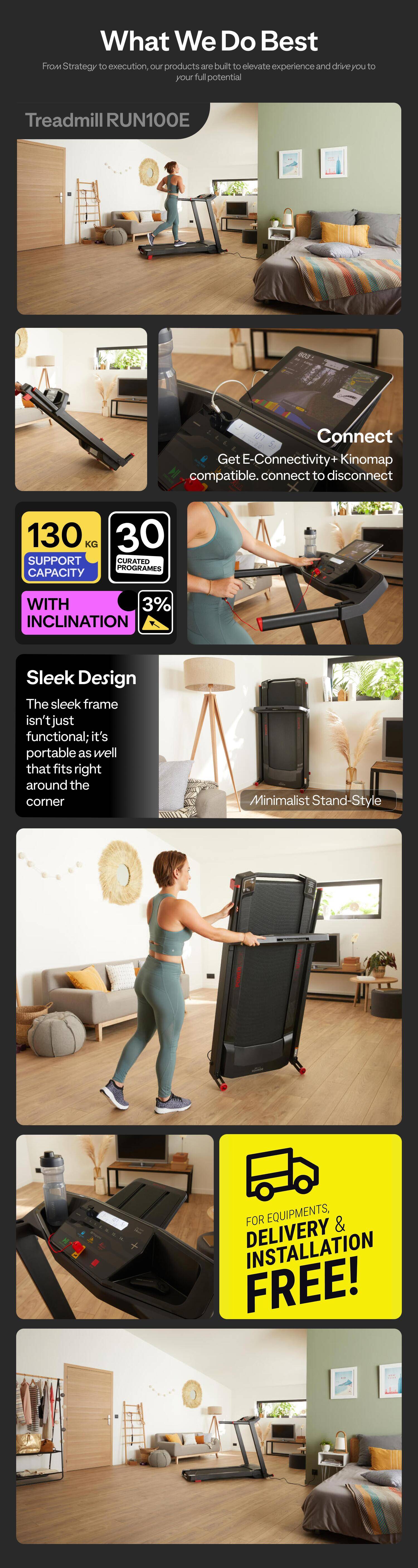 Smart Foldable Treadmill Upto 14 kmph, Supports upto 130kg, Run100E - Black