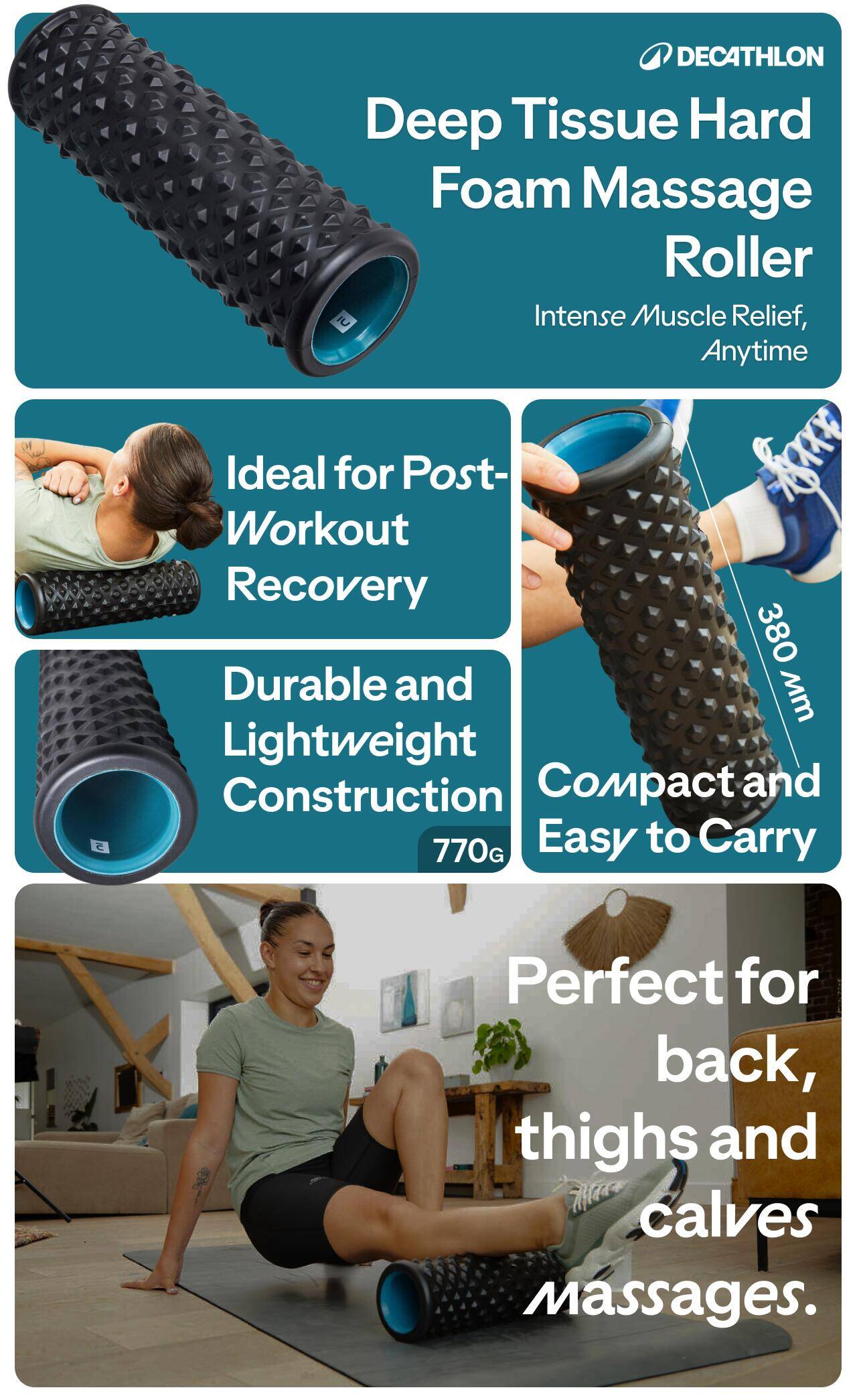 Deep Tissue Hard Foam Massage Roller, 38cm, Intense Muscle Relief, Black