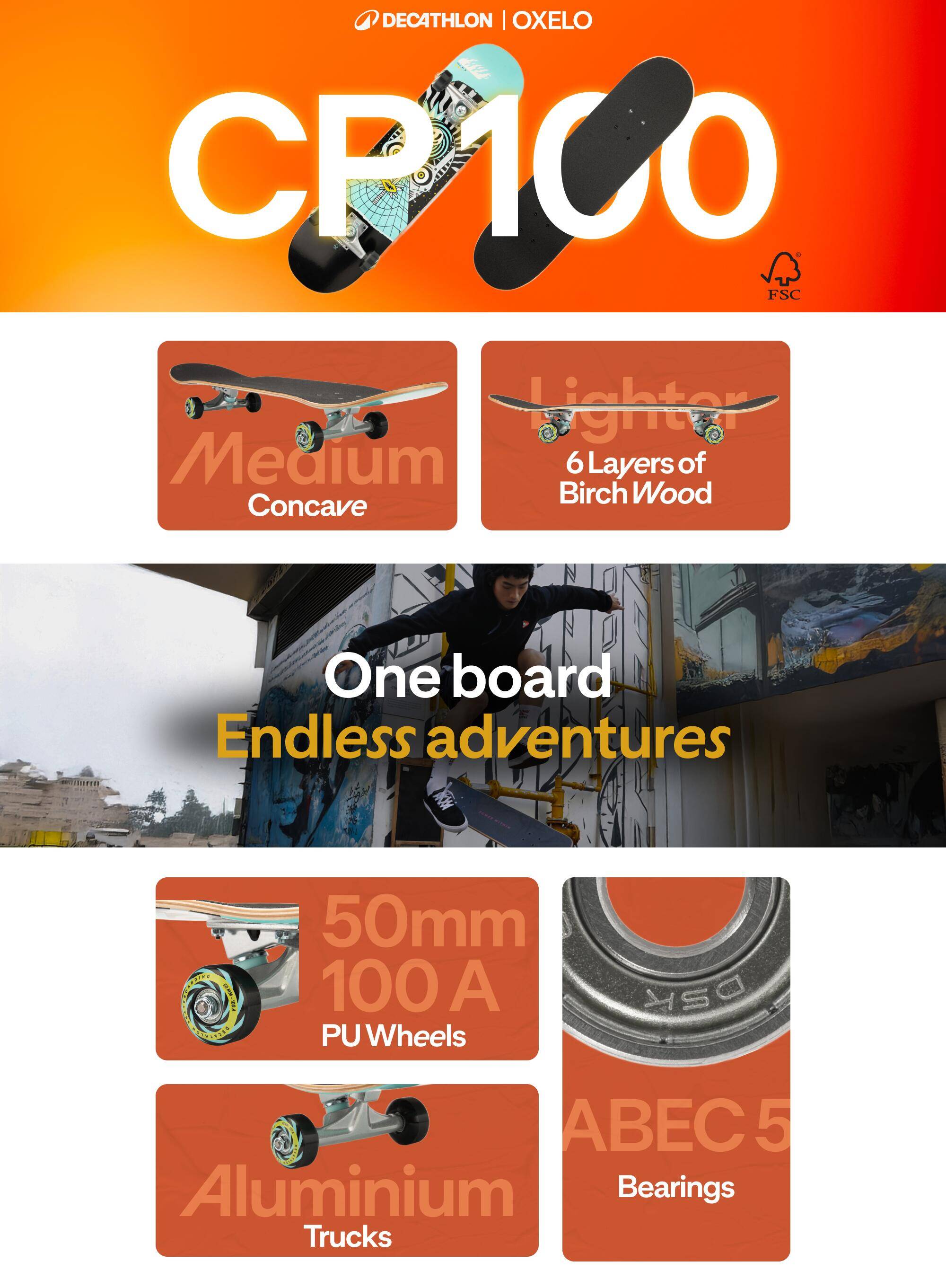 Kids' Skateboard 8-12 Years CP100 Mid Size 7.6" - Cosmic