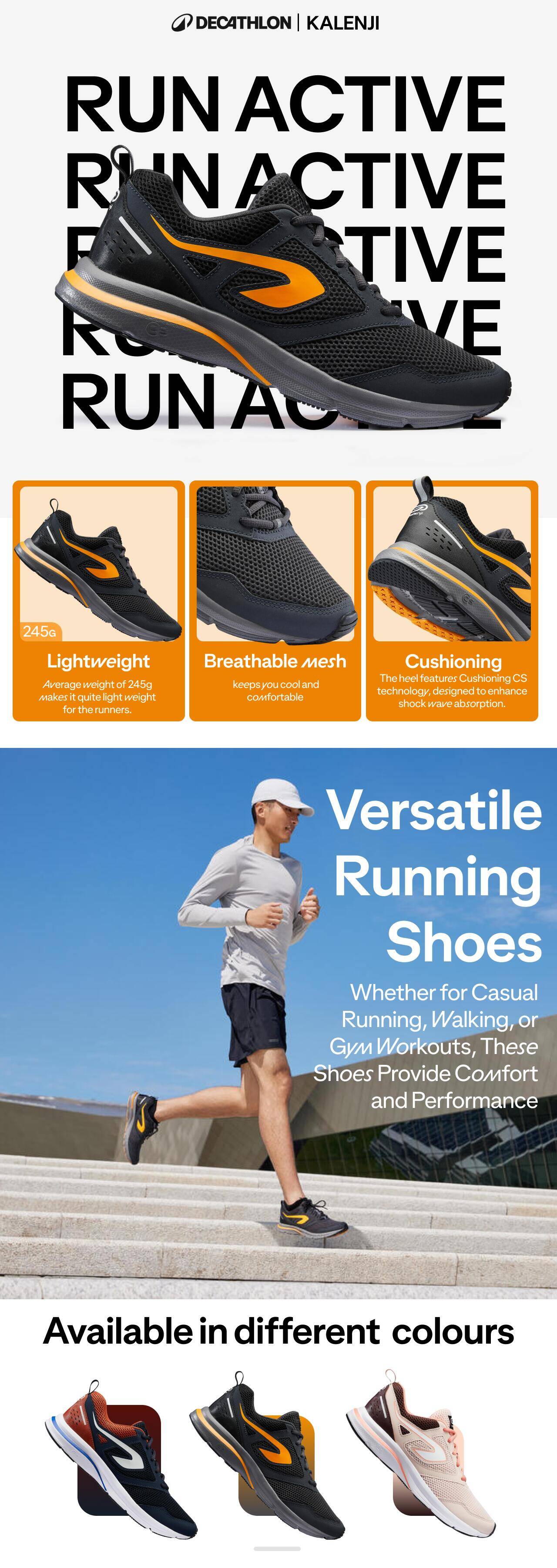 Men Running Shoes Comfort Fit, Upto 10km/week, Run Active - Black and Orange