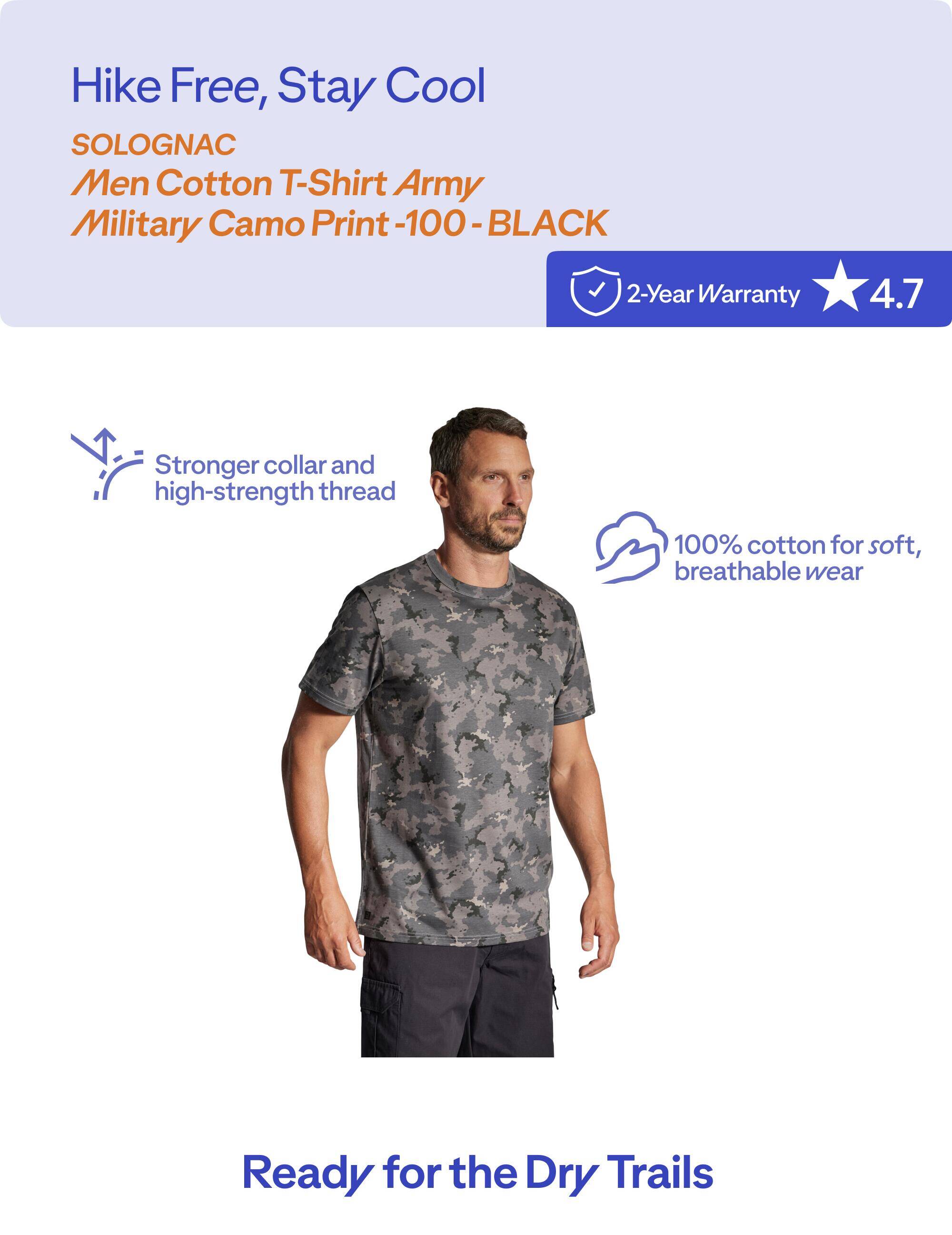 Men Cotton T-Shirt Army Military Camo Print -100 - BLACK