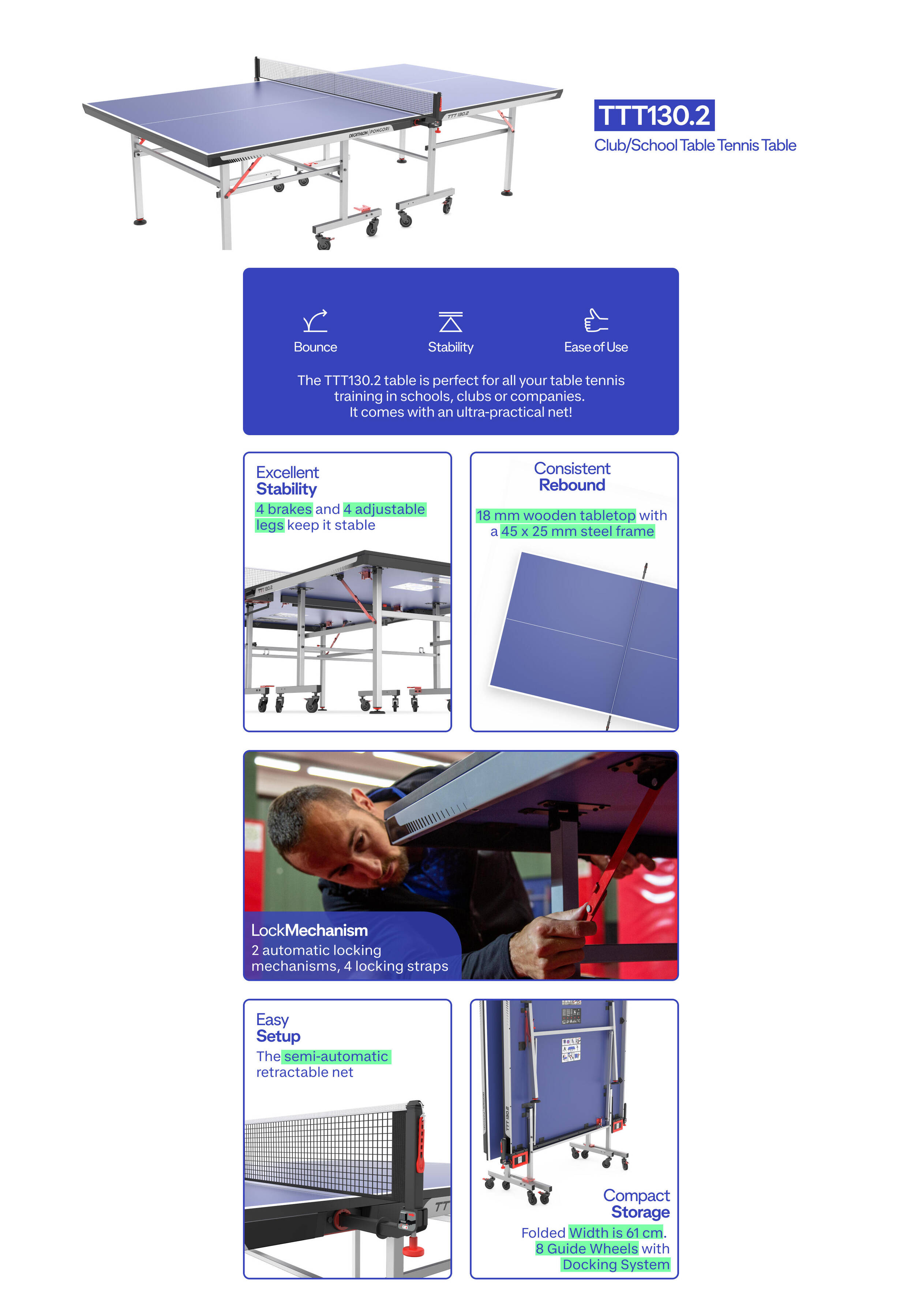 Compact Indoor Table Tennis Table with Innovative Net TTT 130.2 - Blue