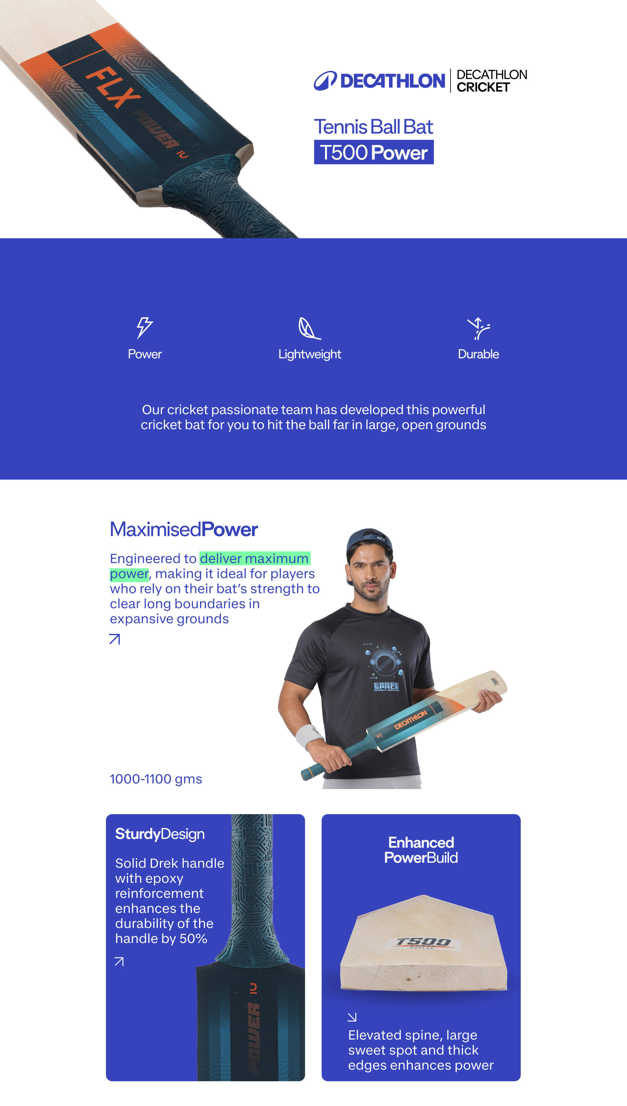 Cricket Bat for Soft & Medium Tennis Ball T500 Power - Blue