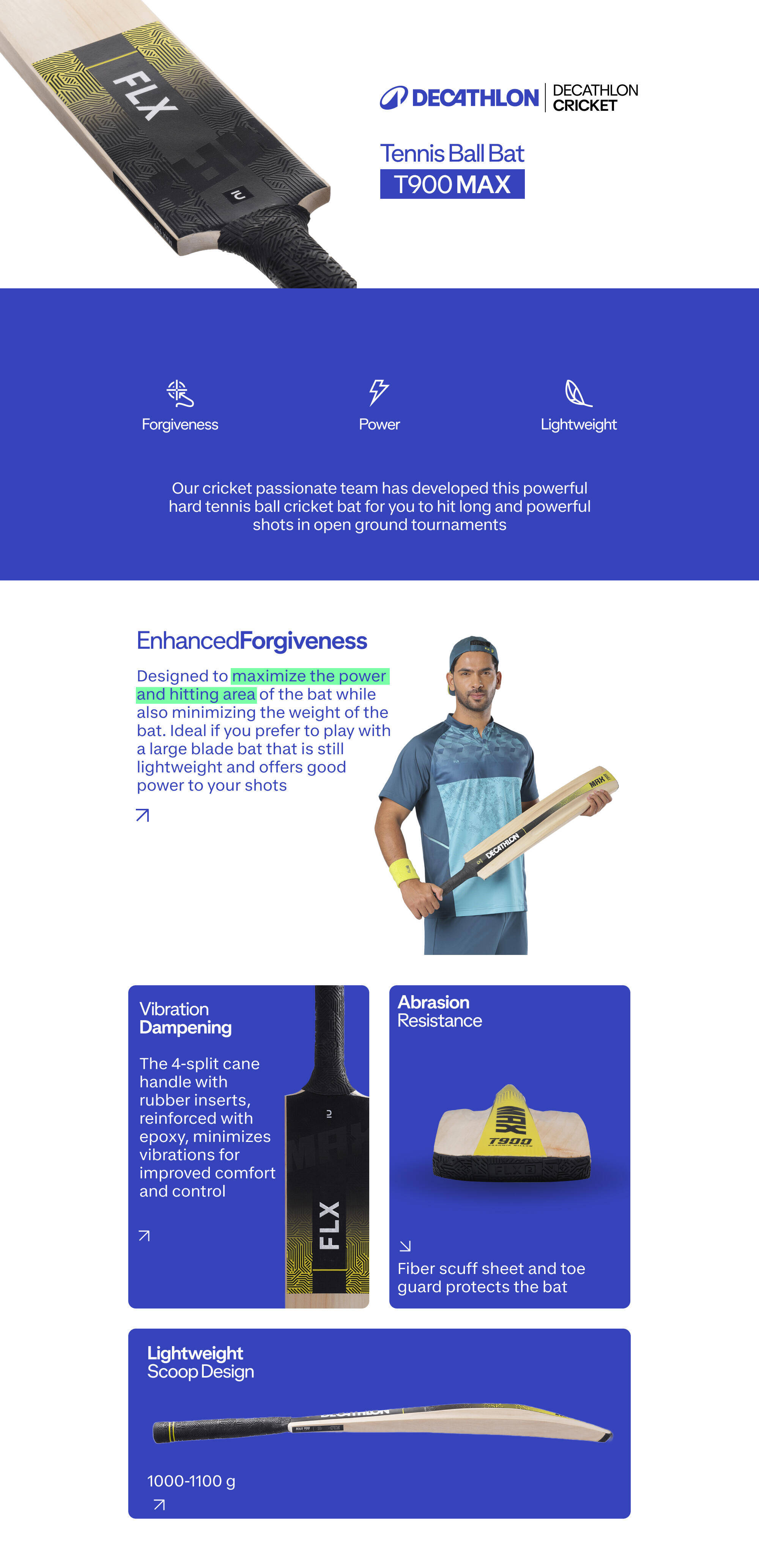 Cricket Bat for Soft & Medium Tennis Ball SH T500 Max - Dark Lime
