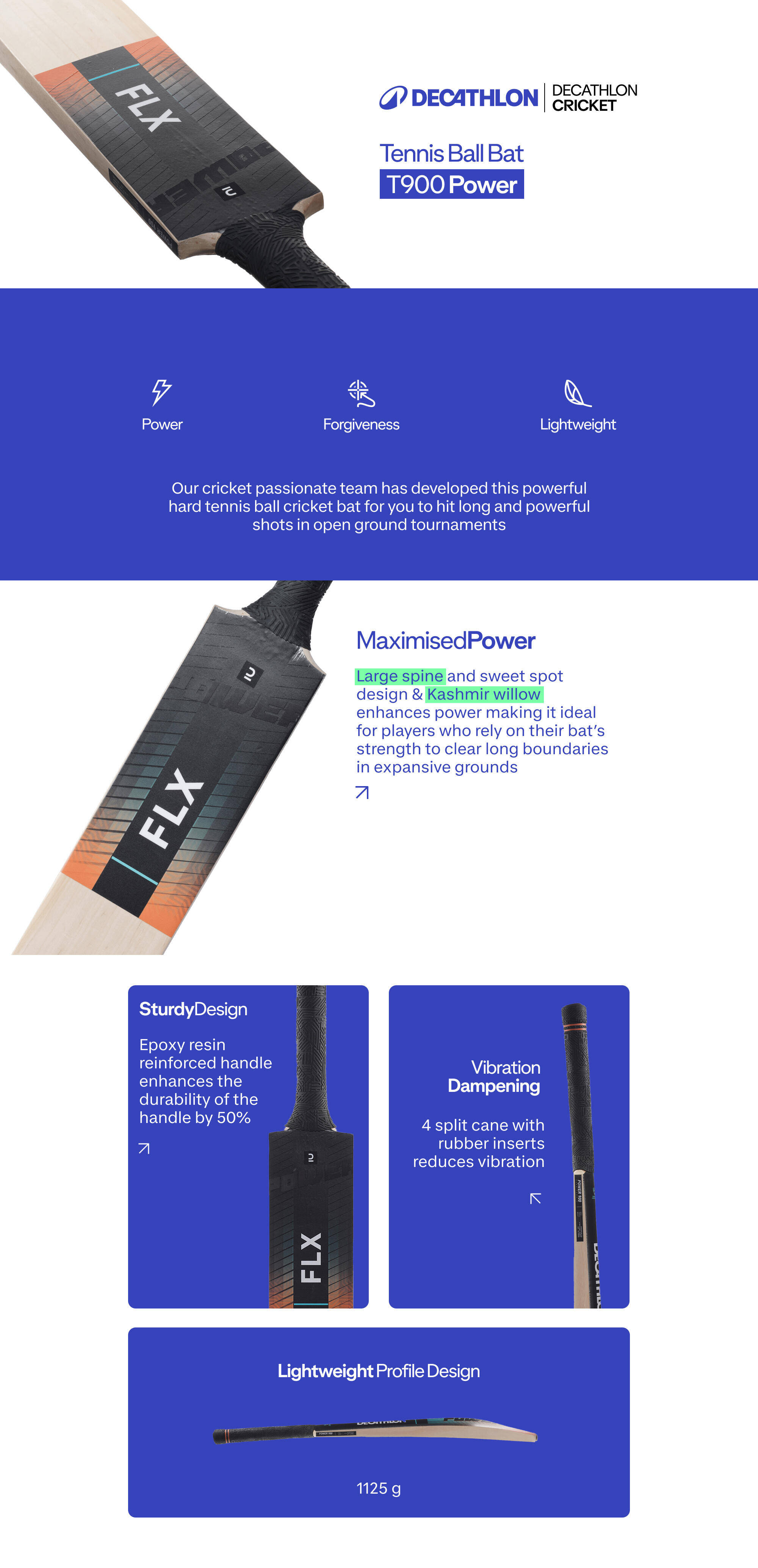 Cricket Bat for Hard Tennis Ball SH T900 Power - Blue