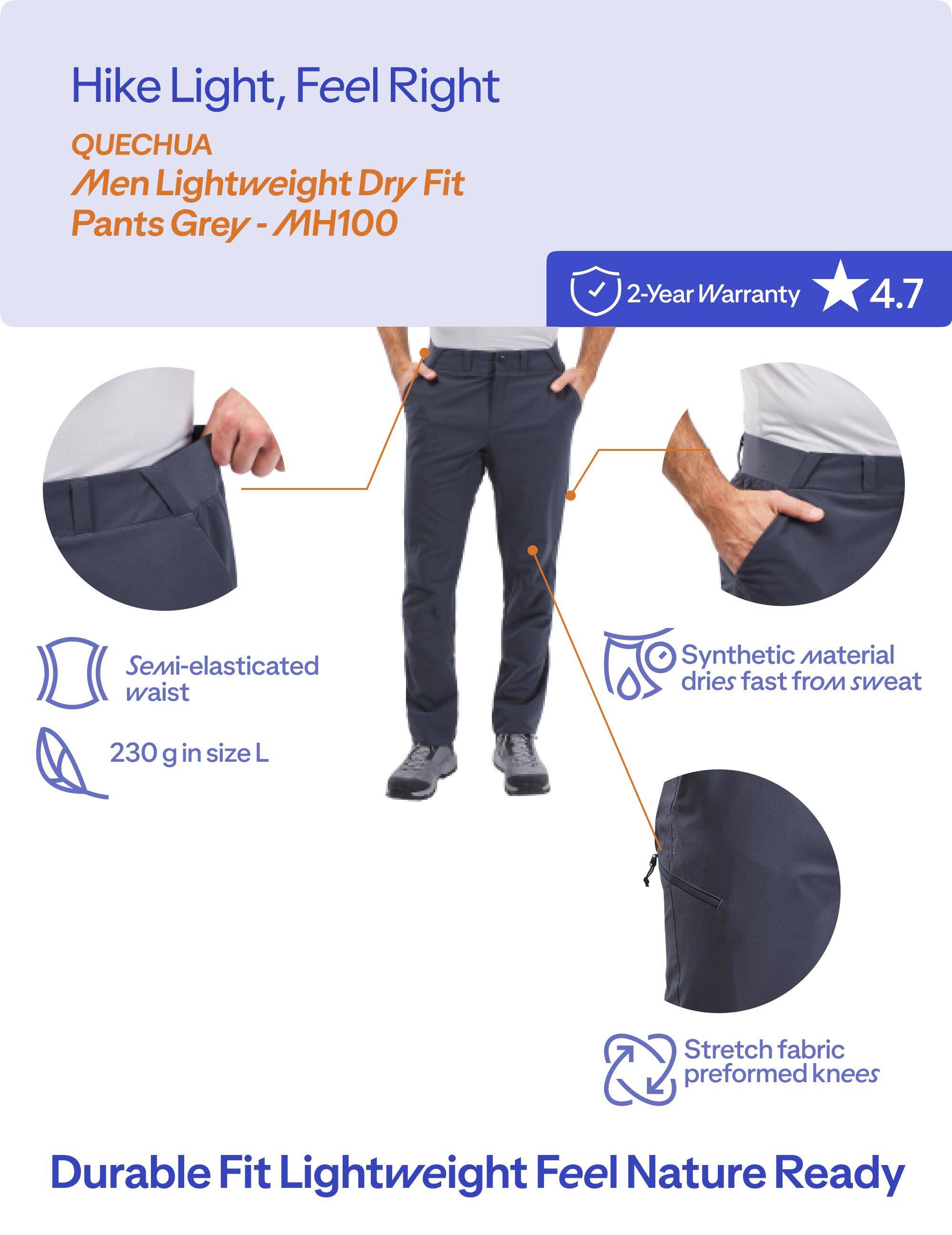 Men Breathable Lightweight Travel Cargo Trousers Pants 100 - Halftone Grey