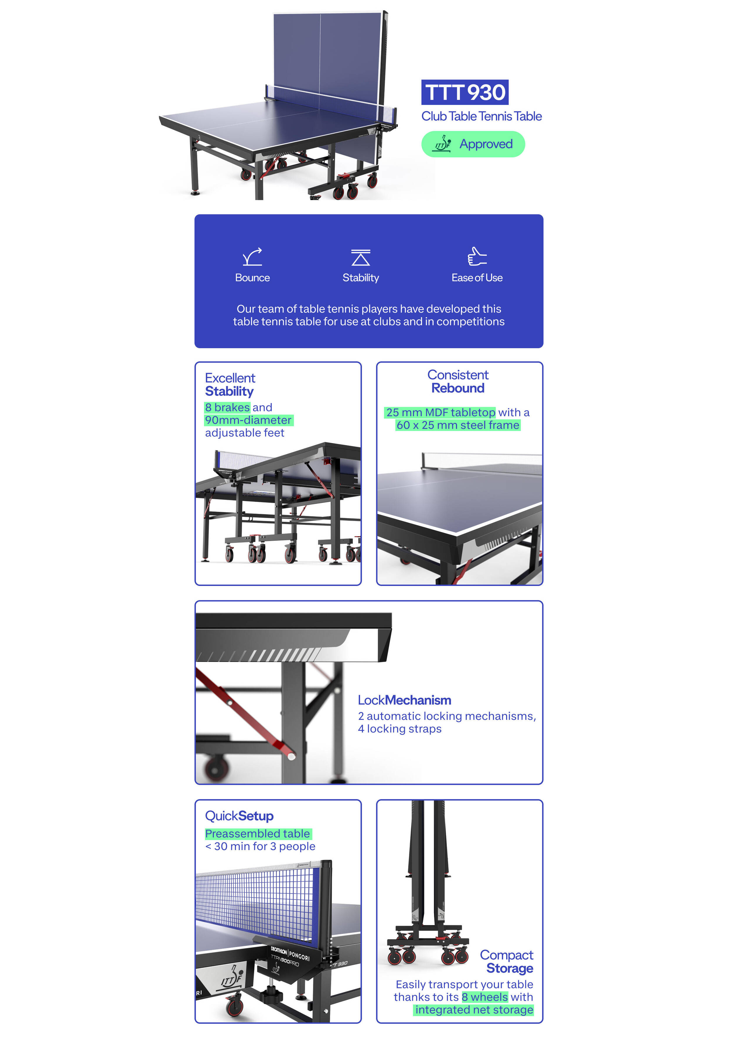 Compact Indoor Table Tennis Table TTT 930 ITTF - Blue