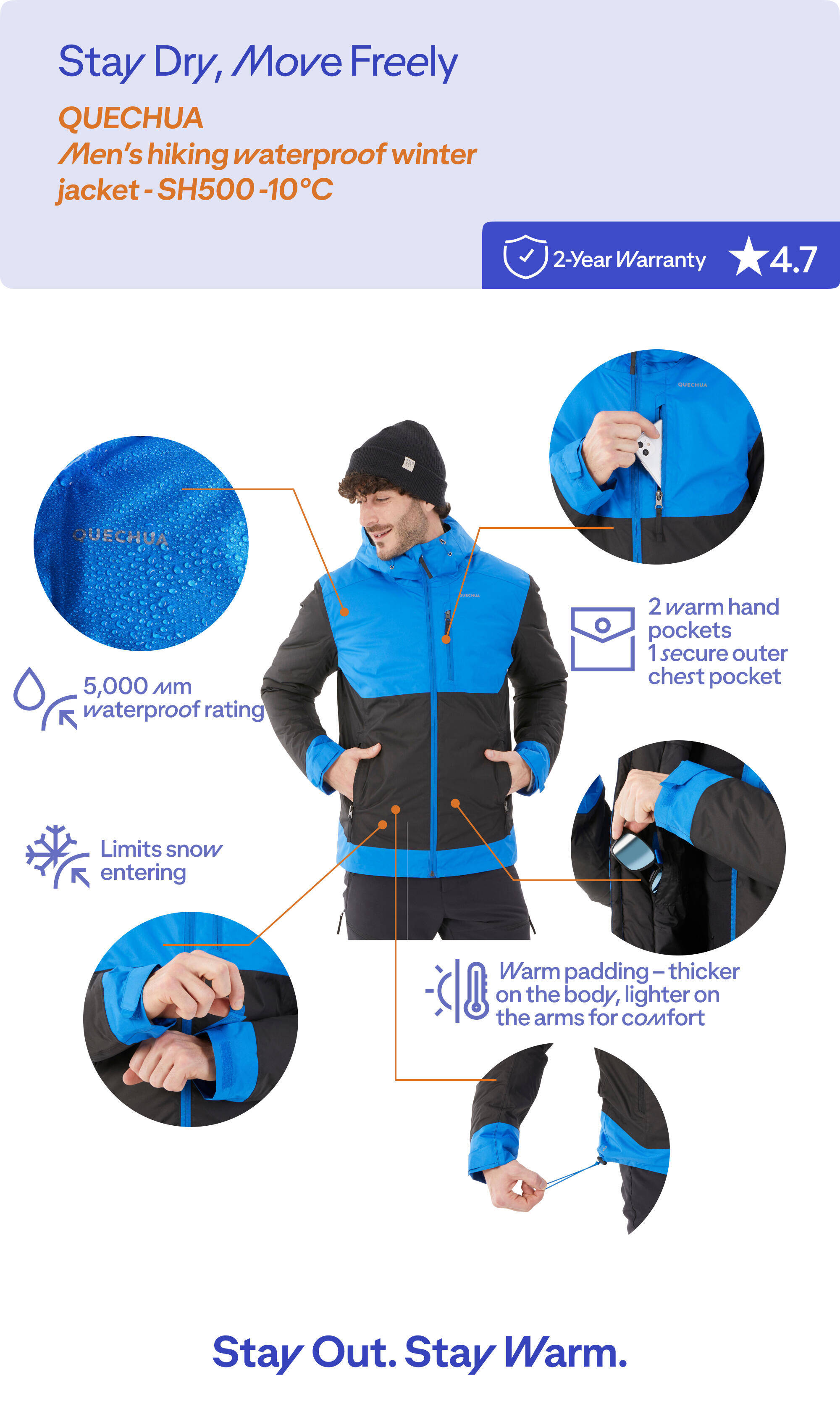 Men’s hiking waterproof winter jacket - SH500 -10°C