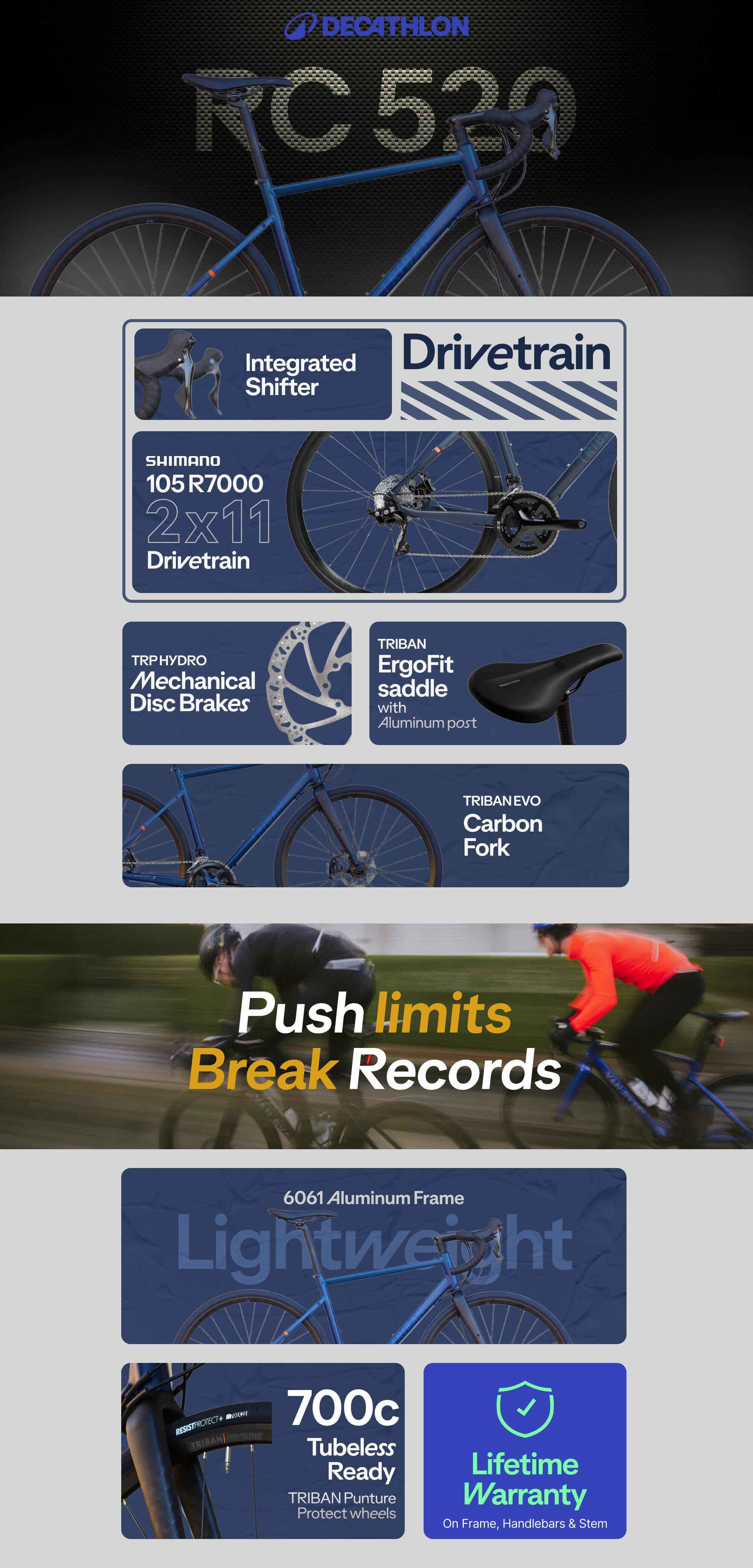 Road Bike Triban RC520 - Shimano 105 2x11, Hydro Mechanical Disc, Carbon Fork