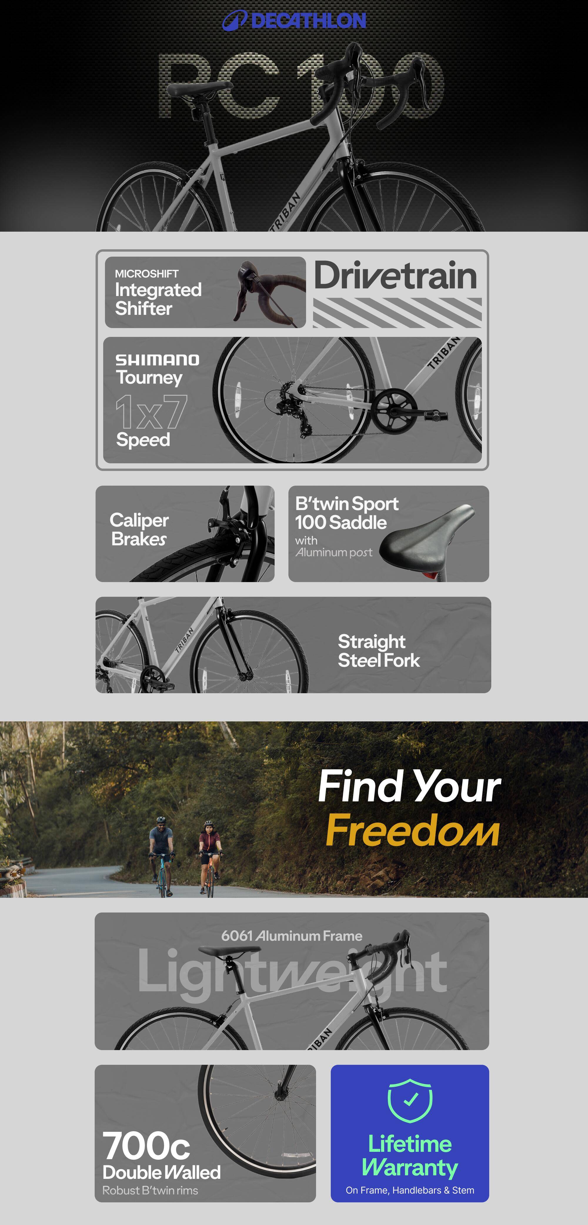 Road Bike Triban RC100 Drop Bar - Integrated Shifters, 7 Speed, Aluminium Frame