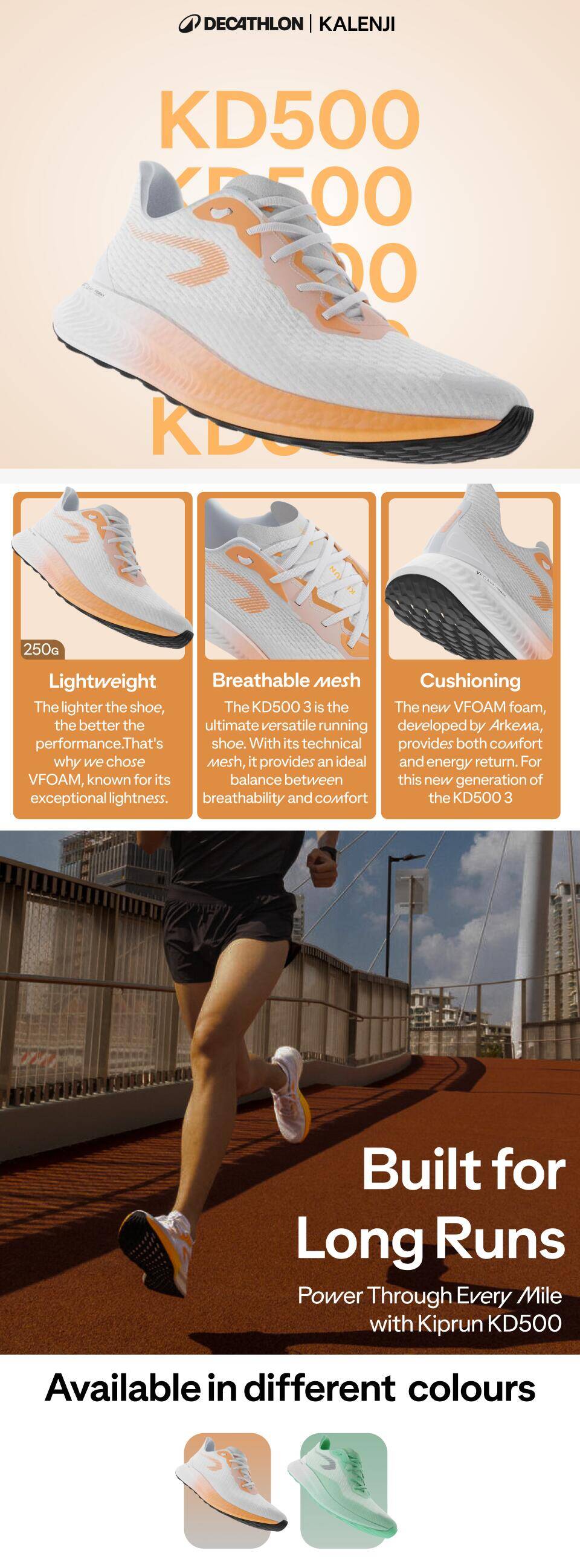 Men Running Shoe, Cushioned Foam Sole and Anti-Slip KD500 3 - White and Orange