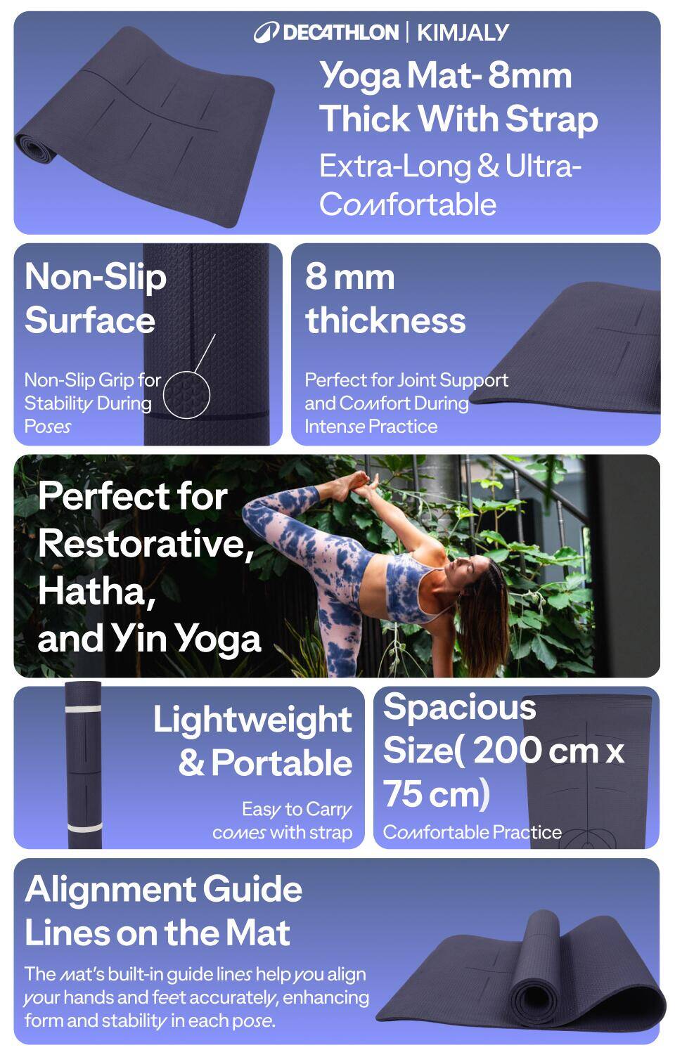 Yoga Mat 8mm Thick, Anti-Slip Foam, 200 x 75 cm with Carry Strap – Comet Blue