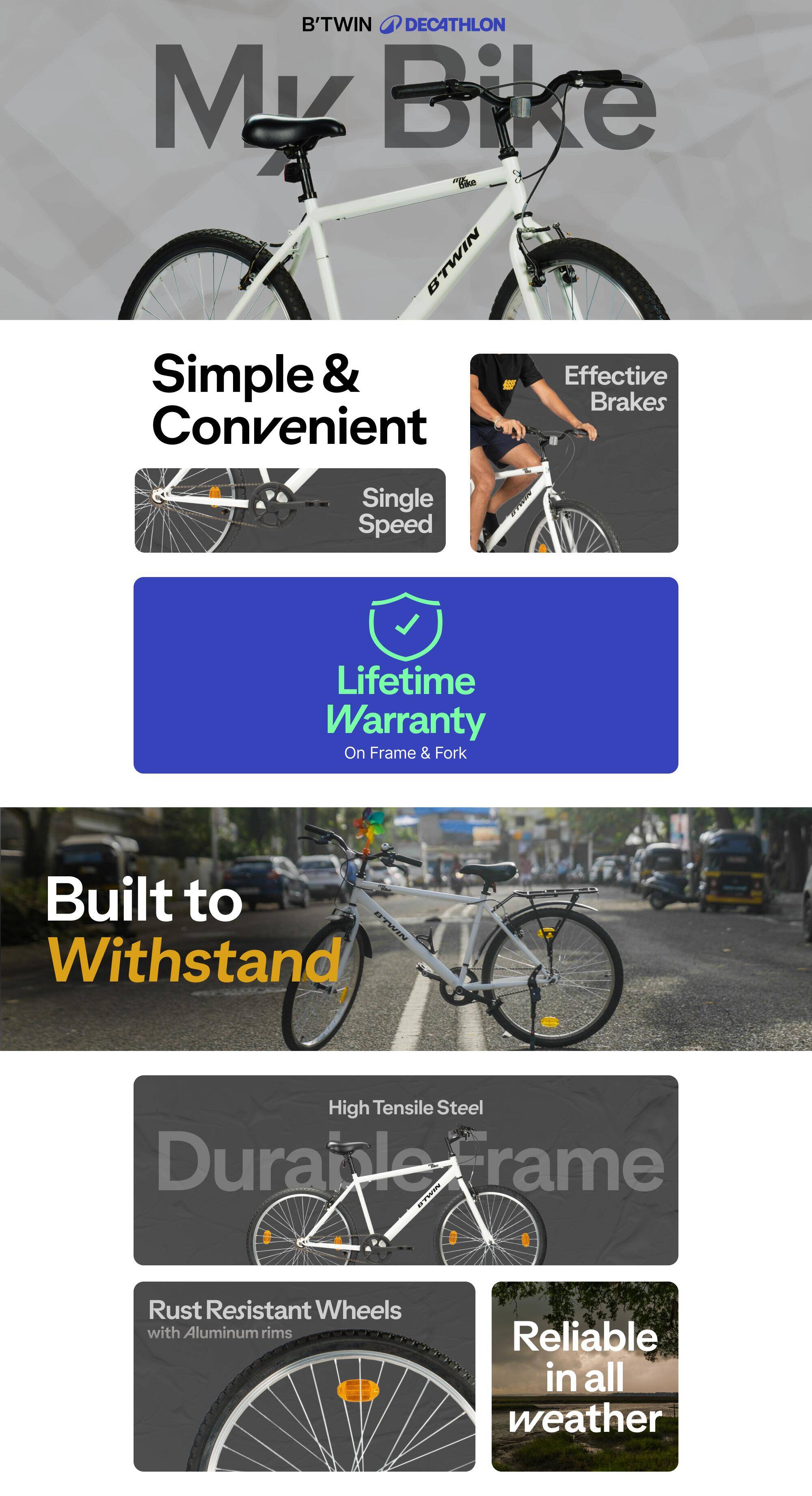 City Cycle Btwin My Bike - Steel Frame, Single Speed, V-Brakes, Aluminium Rims