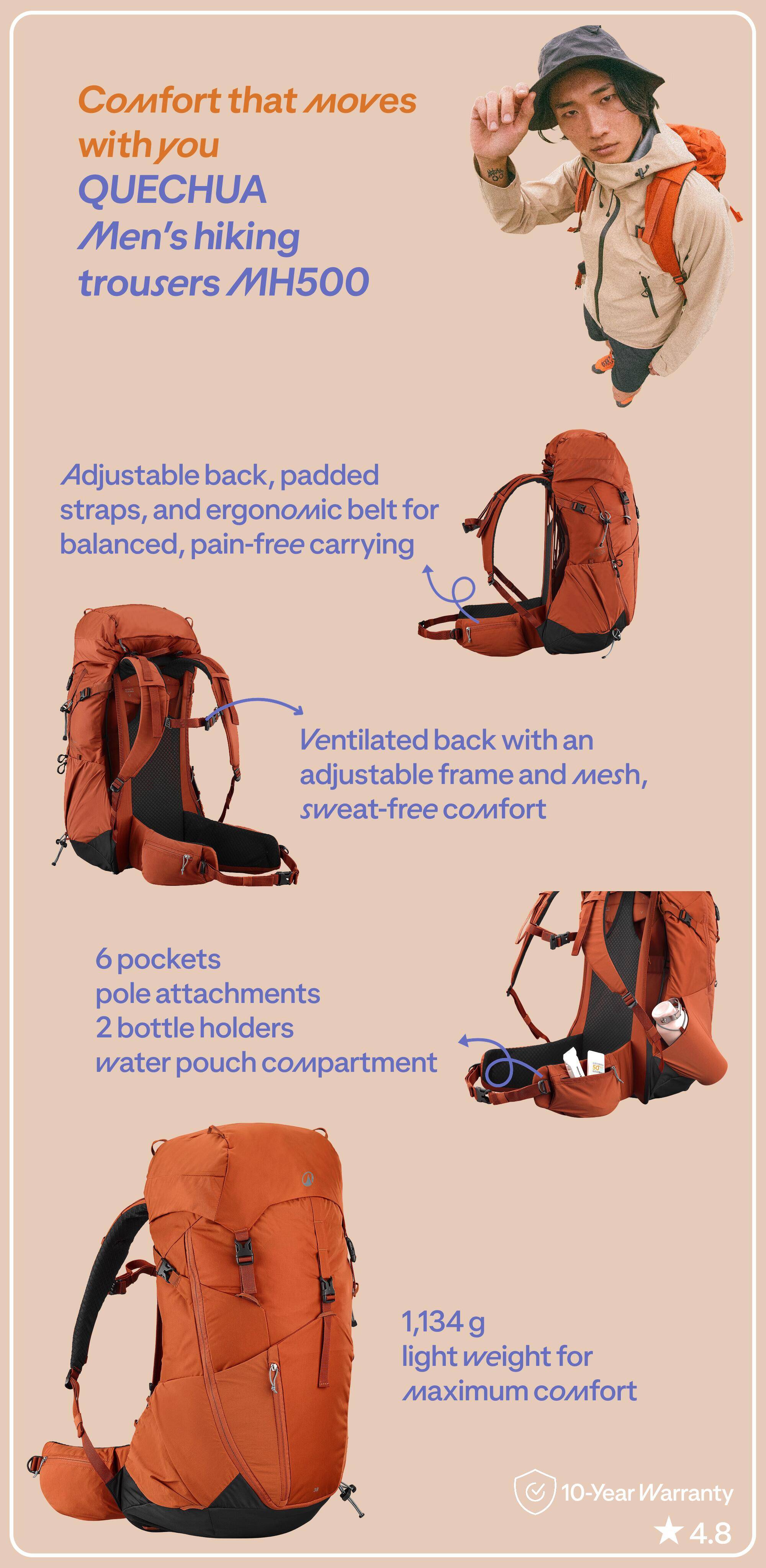 Trekking 50 L Backpack MT100 Easy-Fit - Bordeaux