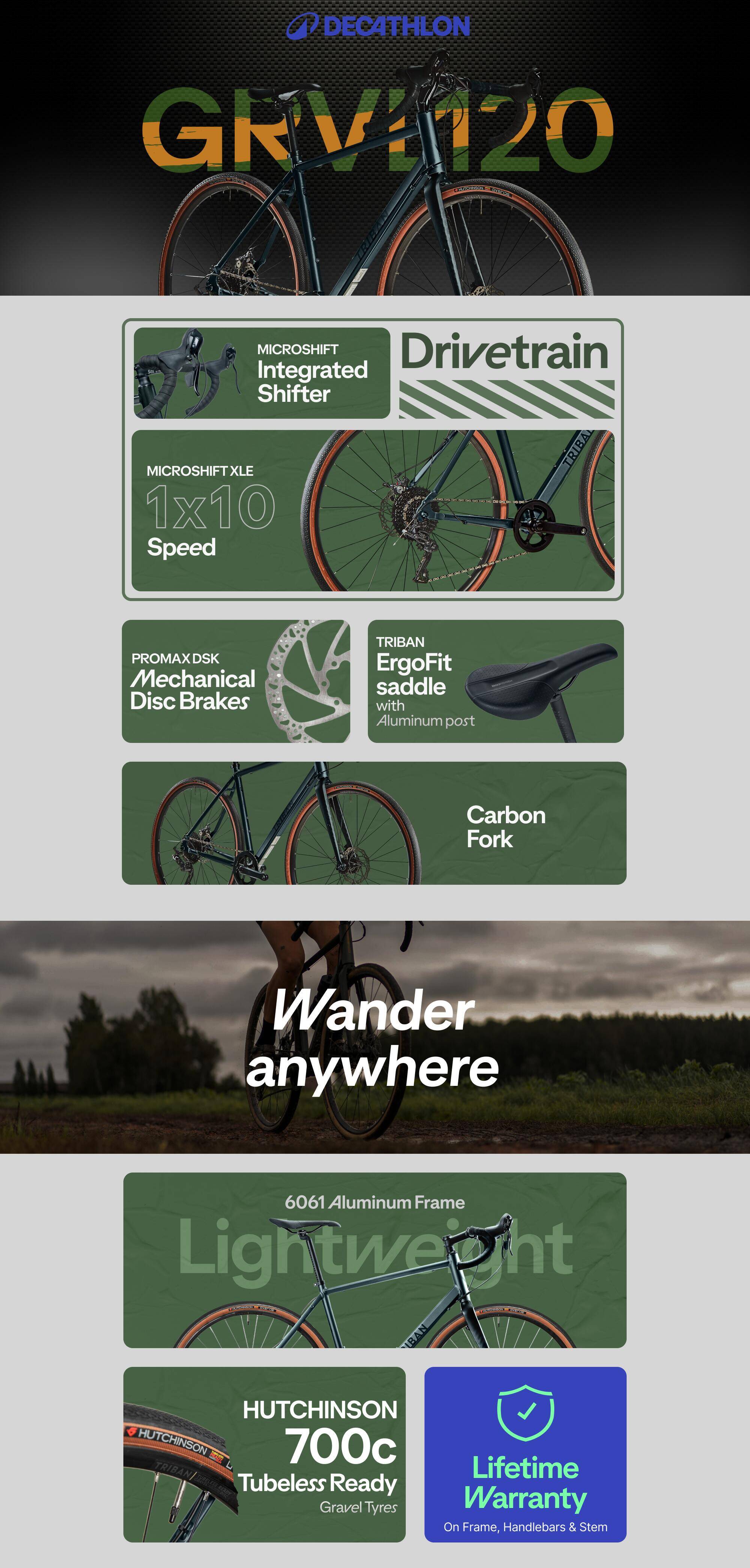 Gravel Bike Triban 10 Speed Promax Disc 700C Aluminium Frame GRLV120 - Bronze